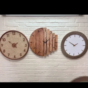 ساعت دیواری مدرن چوبی حصیردار عدد